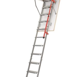 343.64€ – 353.32€ IVA incluidoEscalera LMK Komfort con trampilla termoaislante blanca y un pasamanos rojo. El pasamanos se fija a los soportes de la escalera, facilitando su uso.