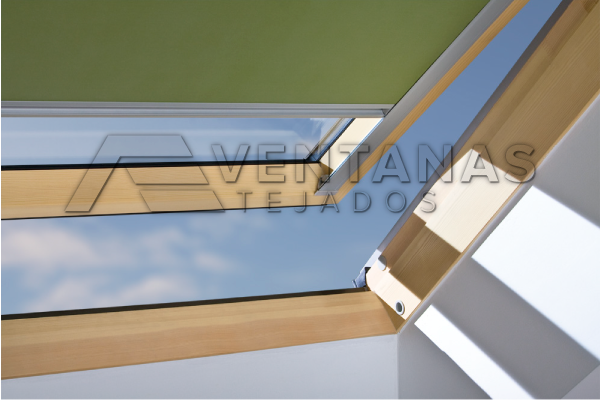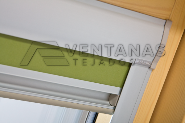 La tela utilizada en la fabricación de la cortina de oscurecimiento está cubierta con un material plateado en la parte exterior, junto al cristal, lo que permite el oscurecimiento total de la estancia. Las guías laterales y una junta en la tira inferior minimizan la aparición de espacios libres.