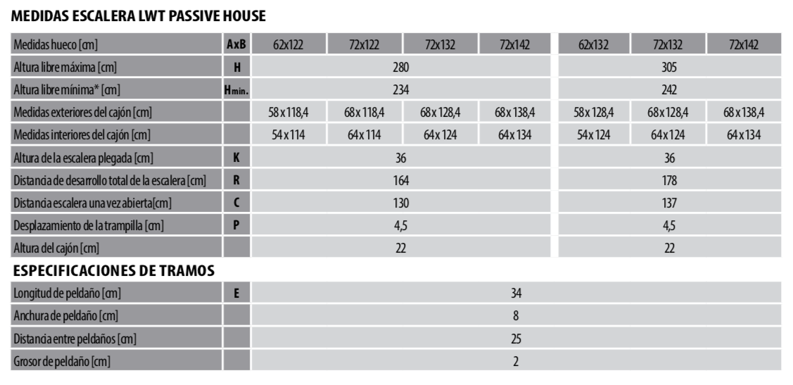 La escalera LWT Passive House es un diseño técnicamente complejo diseñado específicamente para las demandas de construcción energéticamente eficientes. Se instala con un kit que conecta la escalera al techo para garantizar un sellado perfecto y un aislamiento sin puentes térmicos. Tiene la certificación Passive House.