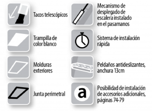 - El mecanismo oculto en el lateral ayuda a plegar y desplegar la escalera.