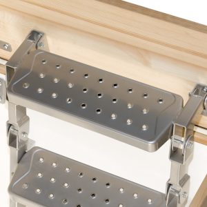 La escalera de metal es lo suficientemente resistente para transportar cargas de hasta 200 kg. A modo de comparación, las escaleras escamoteables de madera pueden soportar cargas de hasta 160 kg. La trampilla de 3,6 cm de grosor está aislada, gracias a lo cual el coeficiente de transmitancia térmica es de 1,1 W/m²K.