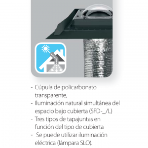 | Modelo Lucerna | SFD-L cubierta inclinada material plano, SFD-H cubierta inclinada material ondulado, SFD-L/L cubierta inclinada material plano, SFD-H/L cubierta inclinada material ondulado |