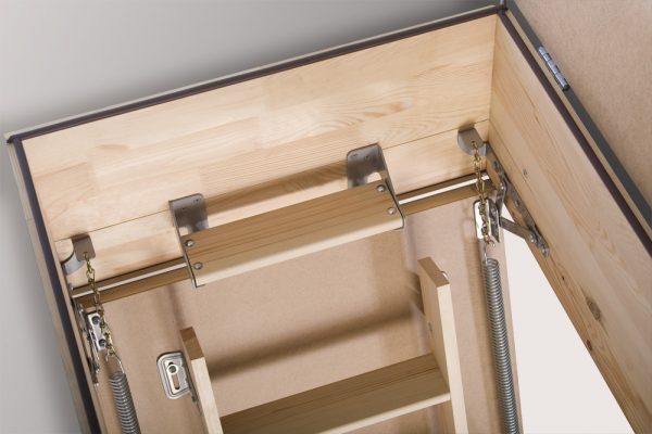 - Fabricado en madera, se instala entre la último peldaño y el techo del desván.