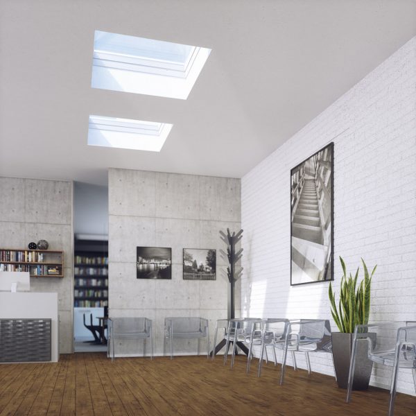 Gran cantidad de luz natural gracias al diseño especial de los perfiles de la ventana de cubierta horizontal ofrece una superficie acristalada hasta un 16% mayor en comparación con las ventanas de otros fabricantes de un tamaño similar.