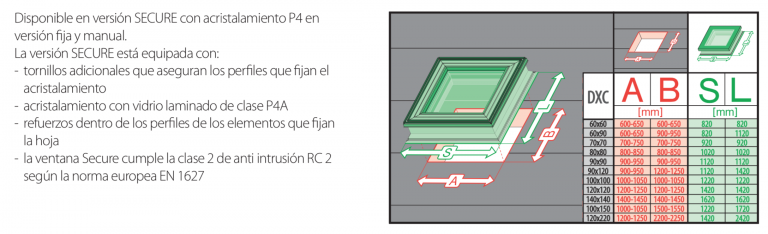 Ventana Fija para Cubierta Horizontal DXG P2