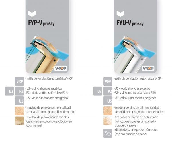 - FYU-V es una ventana fabricada en madera de pino de primera calidad, laminada e impregnada, libre de nudos. Acabada con tres capas de poliuretano blanco para obtener un acabado duradero y suave. Está diseñada para espacios húmedos (cocinas, cuartos de baño).