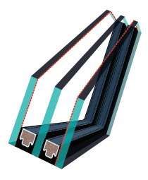 - Dos vidrios de grosor de 4 mm, vidrio interior y exterior flotado con capa de baja emisividad.