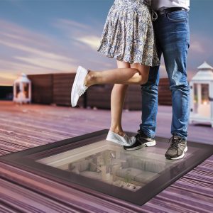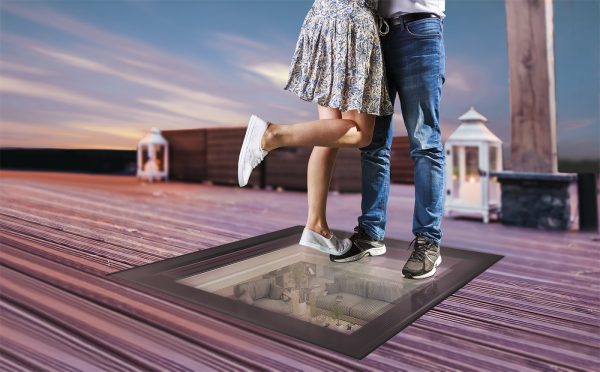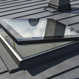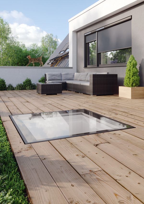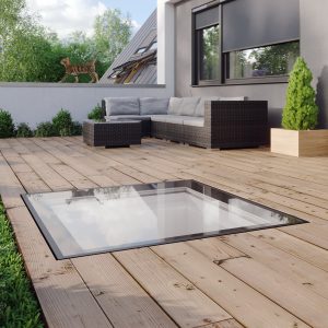 Ventana para cubiertas horizontales DXW, que gracias a una construcción especial con capacidad de carga reforzada y revestimiento antideslizante le permite caminar libremente sobre ella, lo que le permite moverse por las terrazas o cubiertas sin ningún problema.