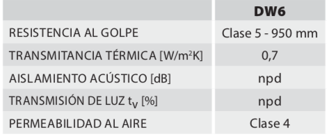 DW6 – Transitable – U= 0,70 W/m²K (según EN 12567-2).